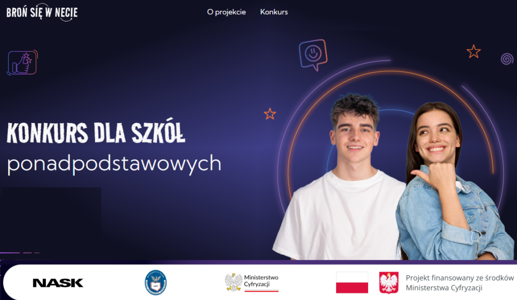 Z ogromną radością informujemy, że nasza szkoła zajęła wysokie 6. miejsce w ogólnopolskim konkursie „Broń się w necie”, organizowanym przez NASK – Państwowy Instytut Badawczy na zlecenie Ministra Cyfryzacji.