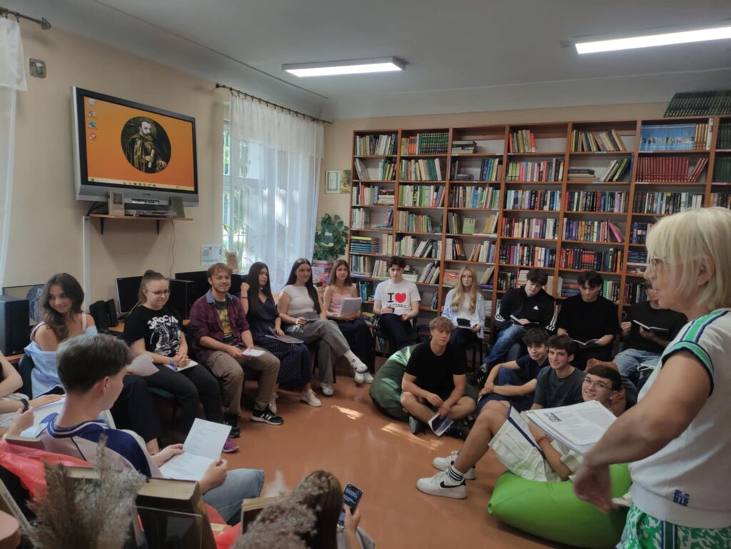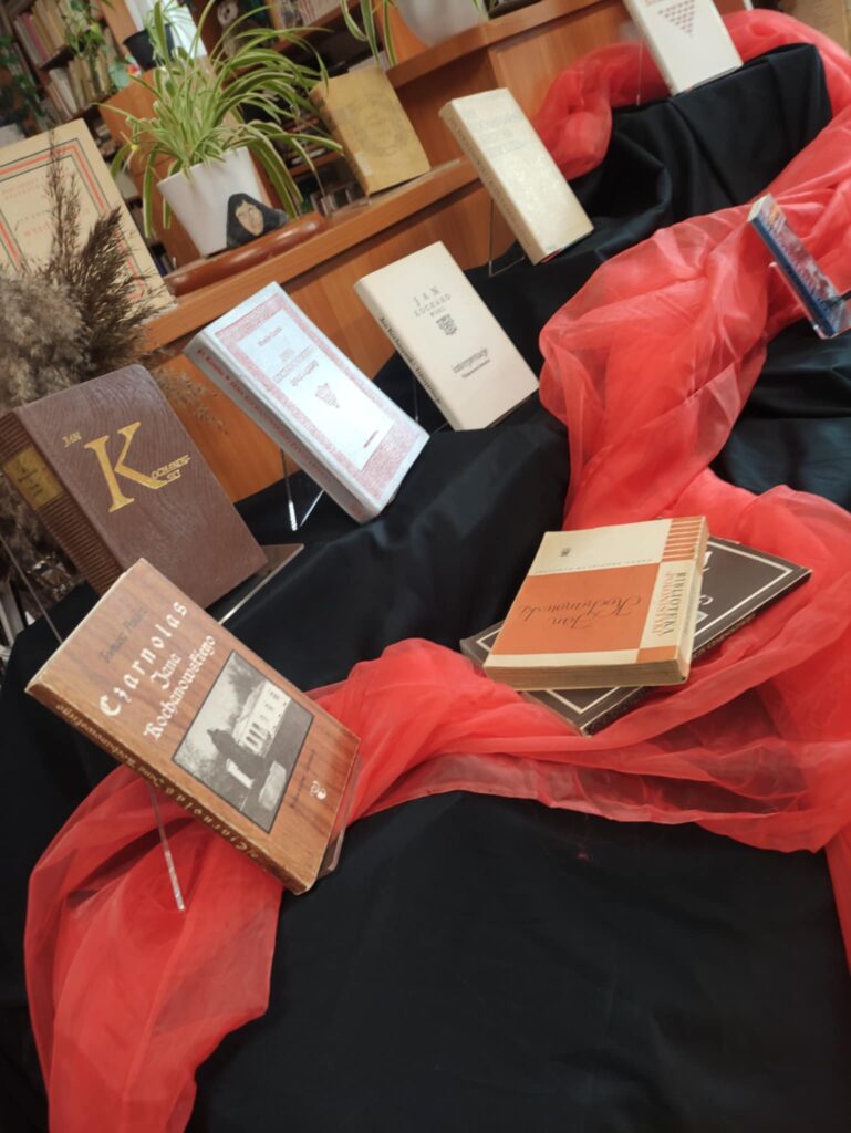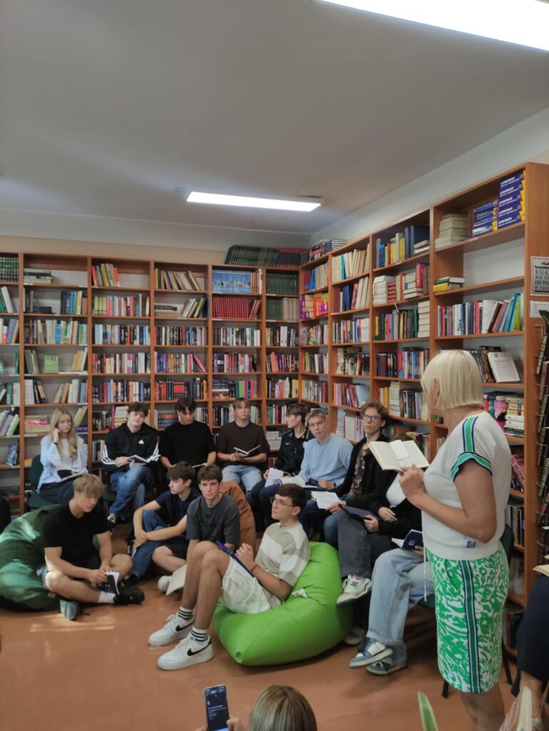 Dodatkowo w naszej bibliotece szkolnej została przygotowana wystawa zbiorów poświęconych twórczości poety. Pochodzą one z zasobów naszej biblioteki, a niektóre egzemplarze pamiętają jeszcze czasy istnienia Gimnazjum im. Anny Jagiellonki. Dzięki temu mogliśmy podziwiać dzieła, które mają już ponad 100 lat, co nadało wydarzeniu wyjątkowego, historycznego charakteru.